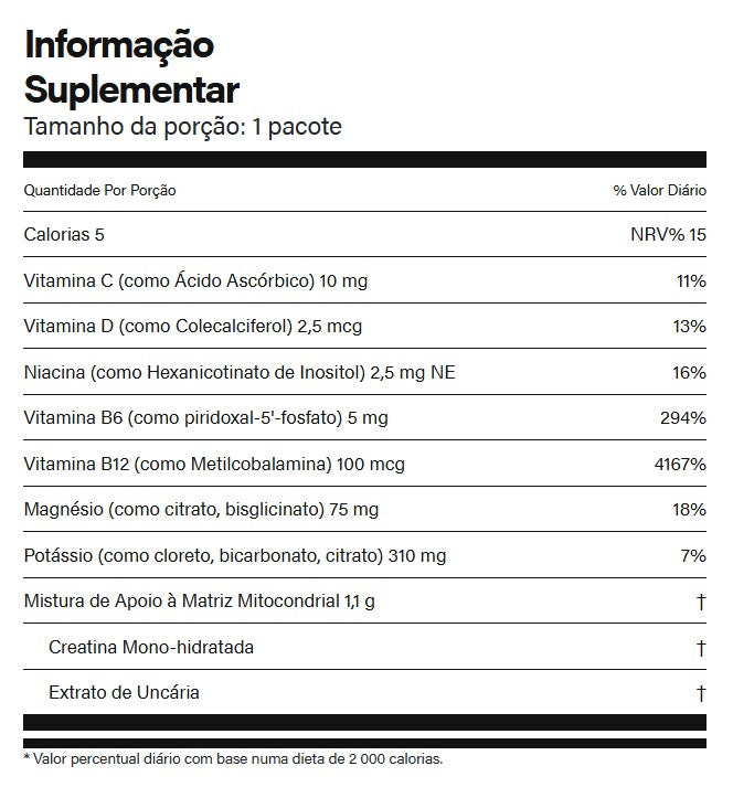 - As vitaminas B12, C e Niacina contribuem para um metabolismo normal de produção de energia.
